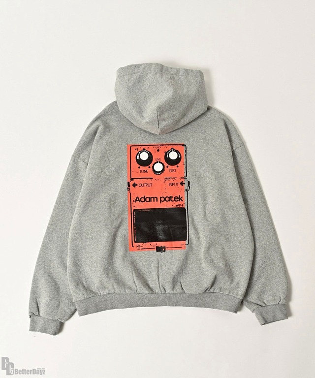 COL : moku gray size : 2 身幅 : 68cm / 着丈 : 70cm / 袖丈 : 58cm 肩幅 : 64cm MATERIAL : 本体 :綿100% リブ:綿95% / ポリウレタン5% 画像と実物ではカラーが若干異なって見える場合もございます。 多少のサイズ誤差は何卒ご了承くださいませ。 セール品・実店舗と在庫を共有している一部商品は、 店頭での陳列、試着により 若干の色あせや履きシワが生じている可能性がございます。 予めご理解くださいますようお願い申し上げます。 『distortion of the explosion : 爆音の歪み』 空気の流れで繊維を撚る技術によって作られた、 OE糸の裏毛素材を使用したプルオーバーパーカー。 「オープンエンド糸(Open-End Yarn)」 空気を使いながら繊維を撚り合わせる 「空紡」という方法で作られます。 これにより、繊維の間に空間ができ、 生地にドライでざっくりした風合い、 適度な硬さ、ガサ感が生まれます。 肉厚で繊維間に空間があるため、 ボリューム感があり、 ざっくりとした着心地です。 アナログなエフェクターをモチーフにした グラフィックで、 ヴィンテージ感にこだわりました。 身幅とアームにゆとりを持たせ、 着丈を抑えた設計が、 現代的なシルエットに。 ~ ADAM PATEK / アダムパテック ~ 2014年より始動。 tokyo design teamが発信するユニセックスブランド。 素材や質に拘り、 ベーシックで馴染みやすいデザインが特徴。