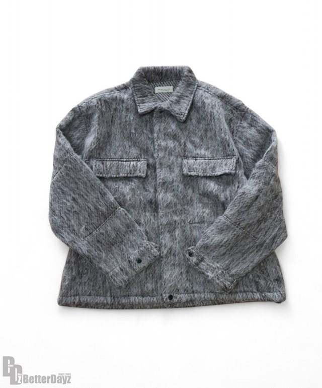 COL : black size : L 身幅 : 68.5cm / 肩幅 : 54.5cm / 着丈 : 68cm 袖丈 : 61cm MATERIAL : 本体 : ポリエステル : 100% 画像と実物ではカラーが若干異なって見える場合もございます。 多少のサイズ誤差は何卒ご了承くださいませ。 セール品・実店舗と在庫を共有している一部商品は、 店頭での陳列、試着により 若干の色あせや履きシワが生じている可能性がございます。 予めご理解くださいますようお願い申し上げます。 毛足の長いジャギー素材が目を惹く、 温もりある表情のブルゾン。 異なるトーンの糸をミックスしたメランジカラーが、 スタイリングに奥行きと立体感を与えます。 ゆったりとしたワイドシルエットで、 インナーを選ばず着用可能。 ミリタリーシャツを思わせる 大きめのフラップポケットがアクセントとなり、 上品さと無骨さを両立したデザインです。 裾にはドローコードを配し、 シルエットの調整も自由自在。 シャツ感覚で羽織っても、 アウターとしても活躍する万能な1枚。 ■fabric 軽くて柔らかいジャギー素材を使用し、 見た目にもあたたかみのある起毛感が特徴。 裏面にはニットライクなテクスチャーを採用し、 快適な着心地と保温性を兼ね備えています。 ~ Many men many minds ~ ストレスフリーな日常 肩肘張らないニュースタンダードウェア