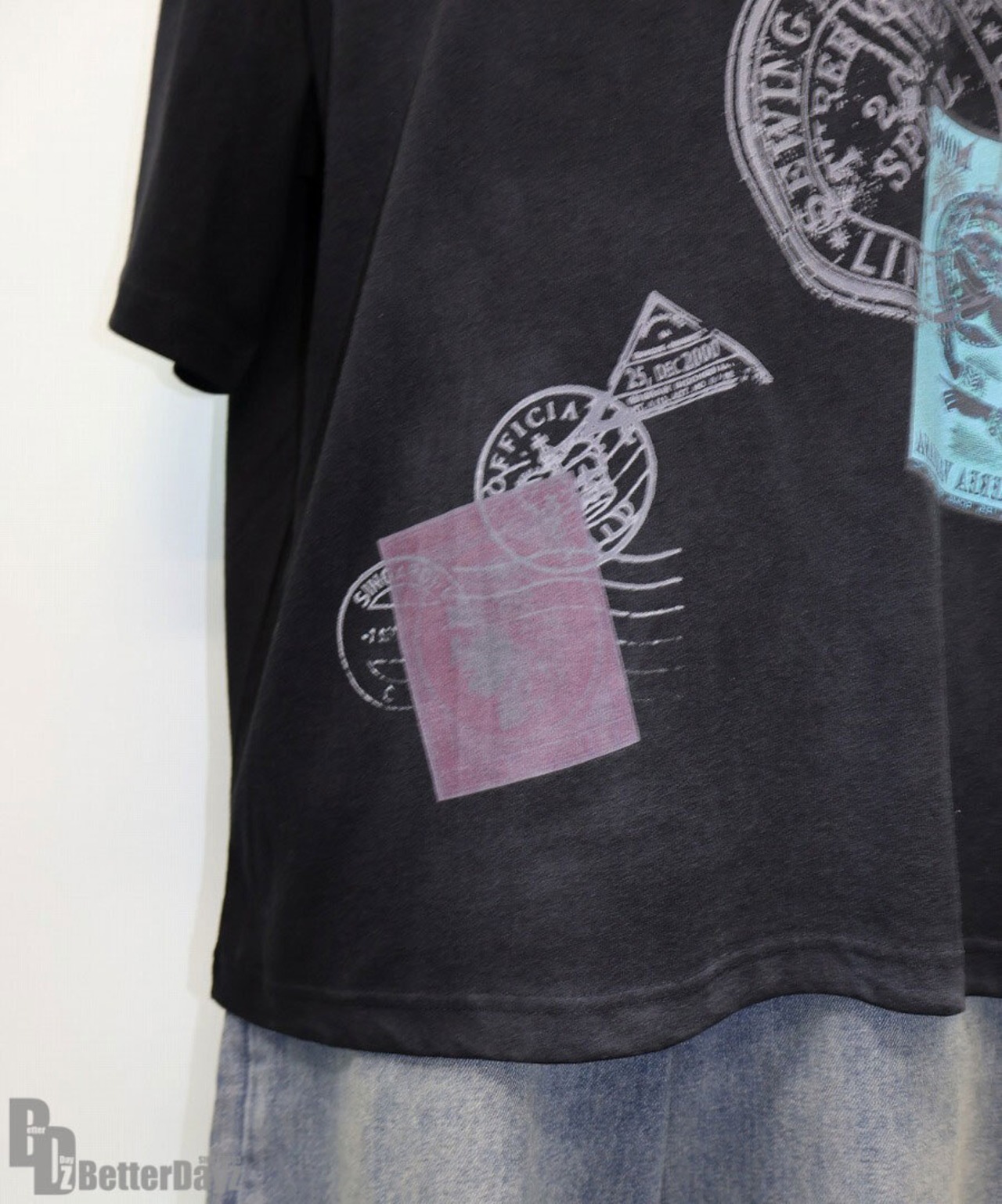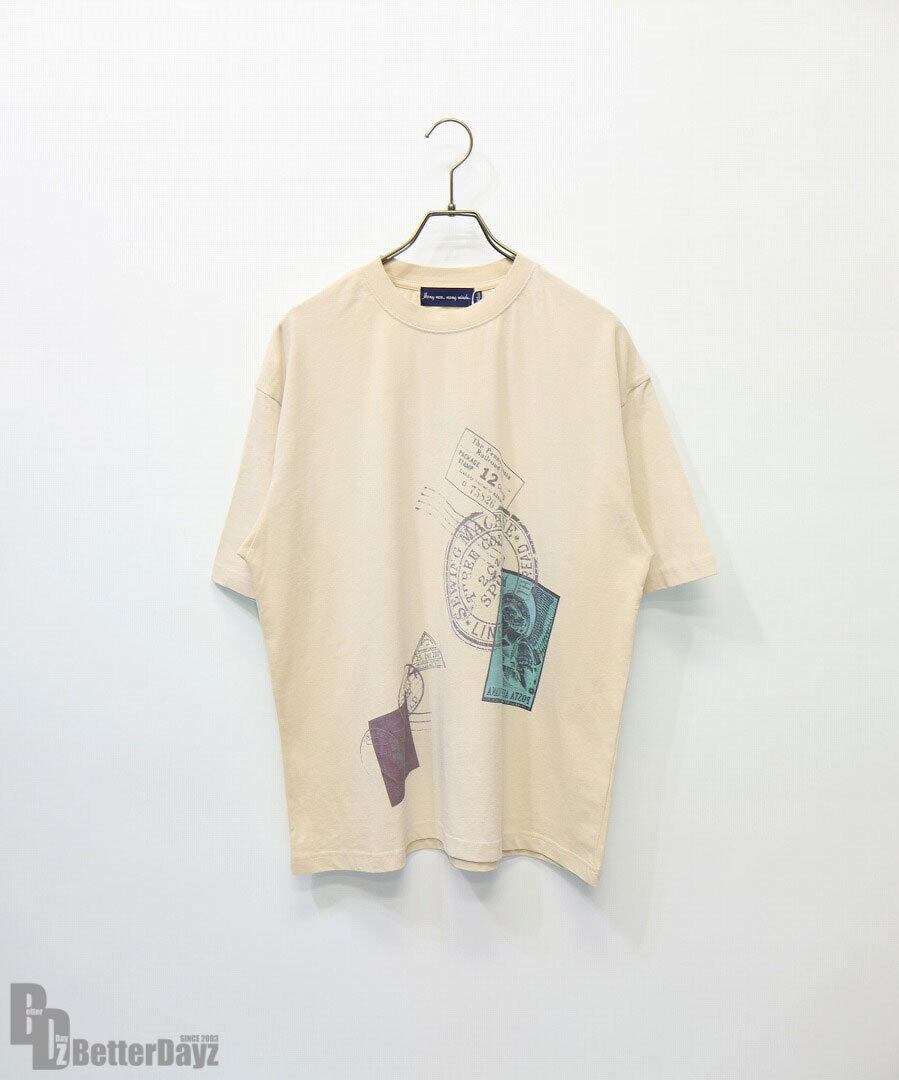 Many men many minds : 古着風スプレー加工切手プリントTEE