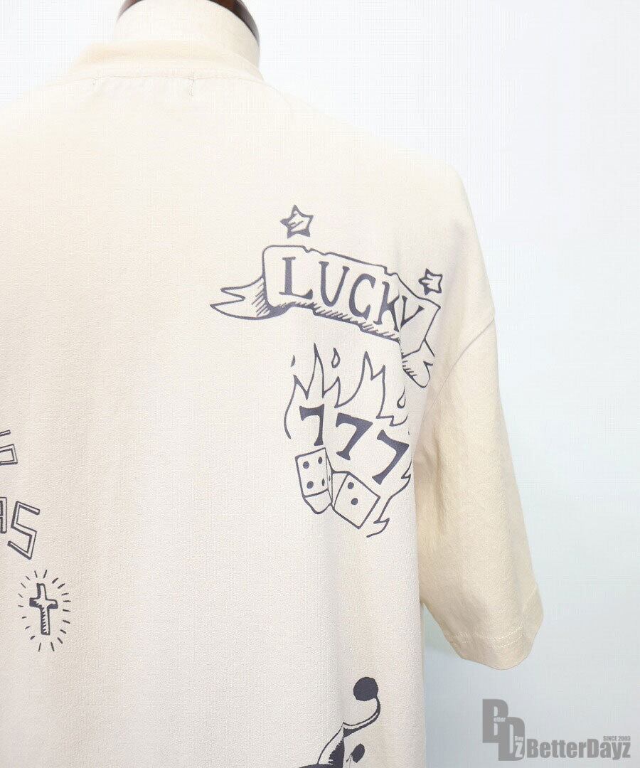Many men many minds : 古着風スプレー加工カジノプリントTEE