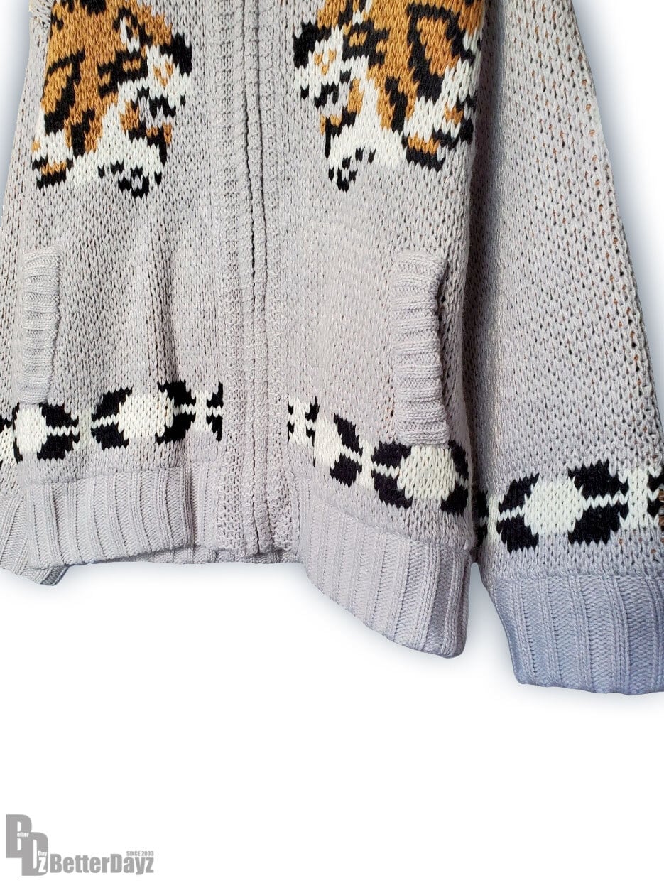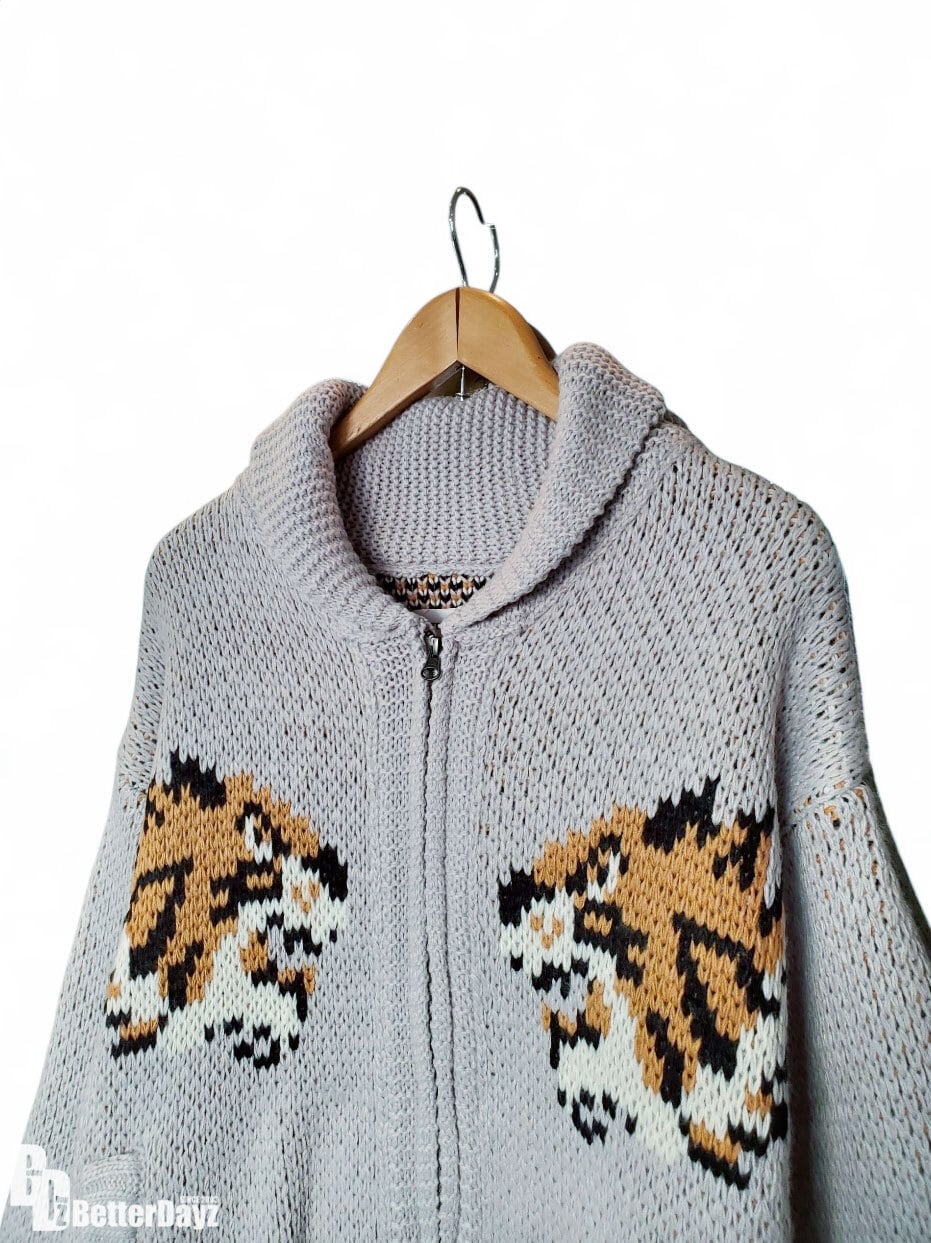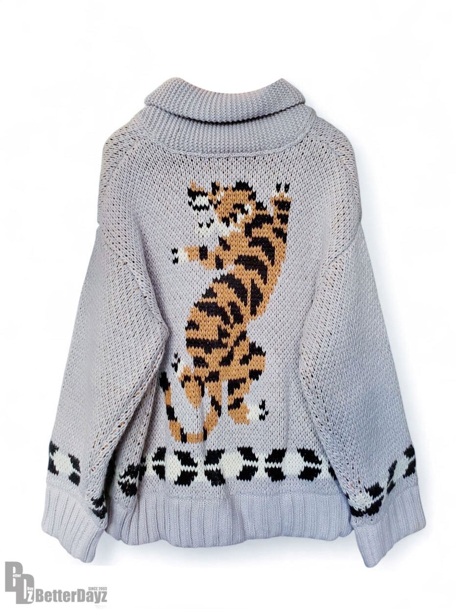 オリジナルロゴのトラ柄ローゲージ カウチンセーター。