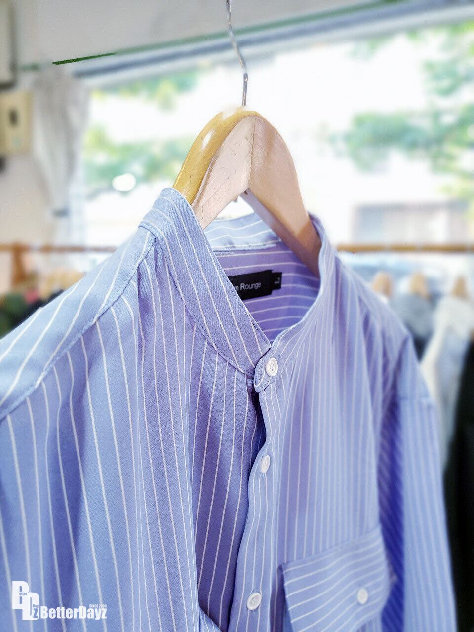HARLEM ROUNGE : ストライプバンドカラーシャツ