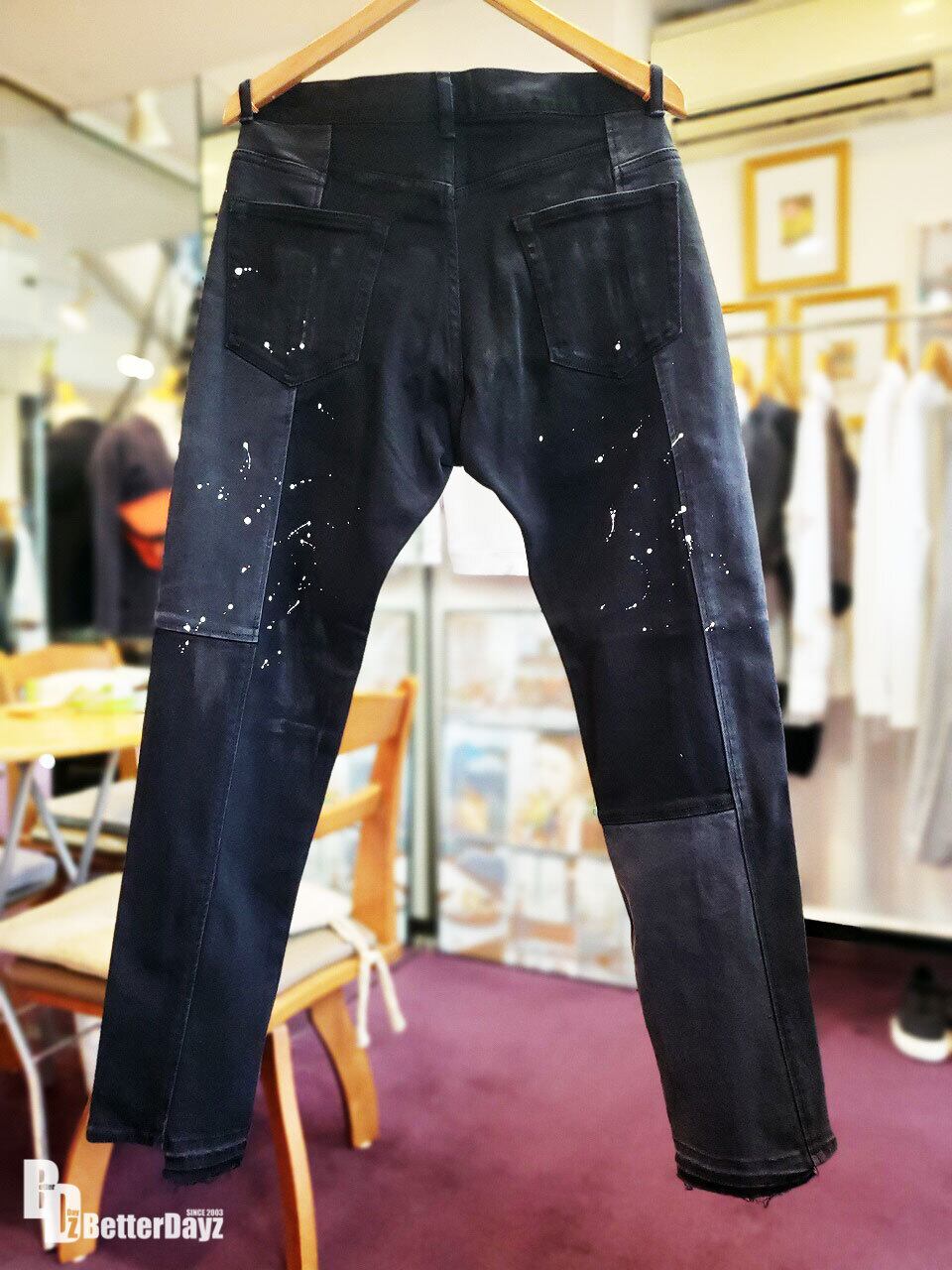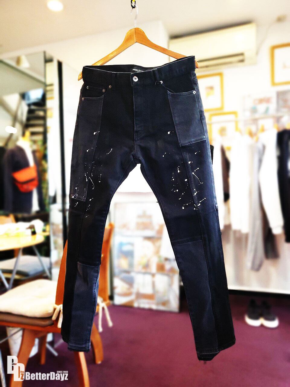 HARLEM ROUNGE : パッチワークペイントブラックデニムパンツ