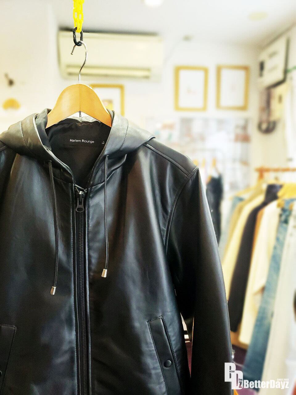 HAREM ROUNGE : ラムレザーリブフーデッドジャケット