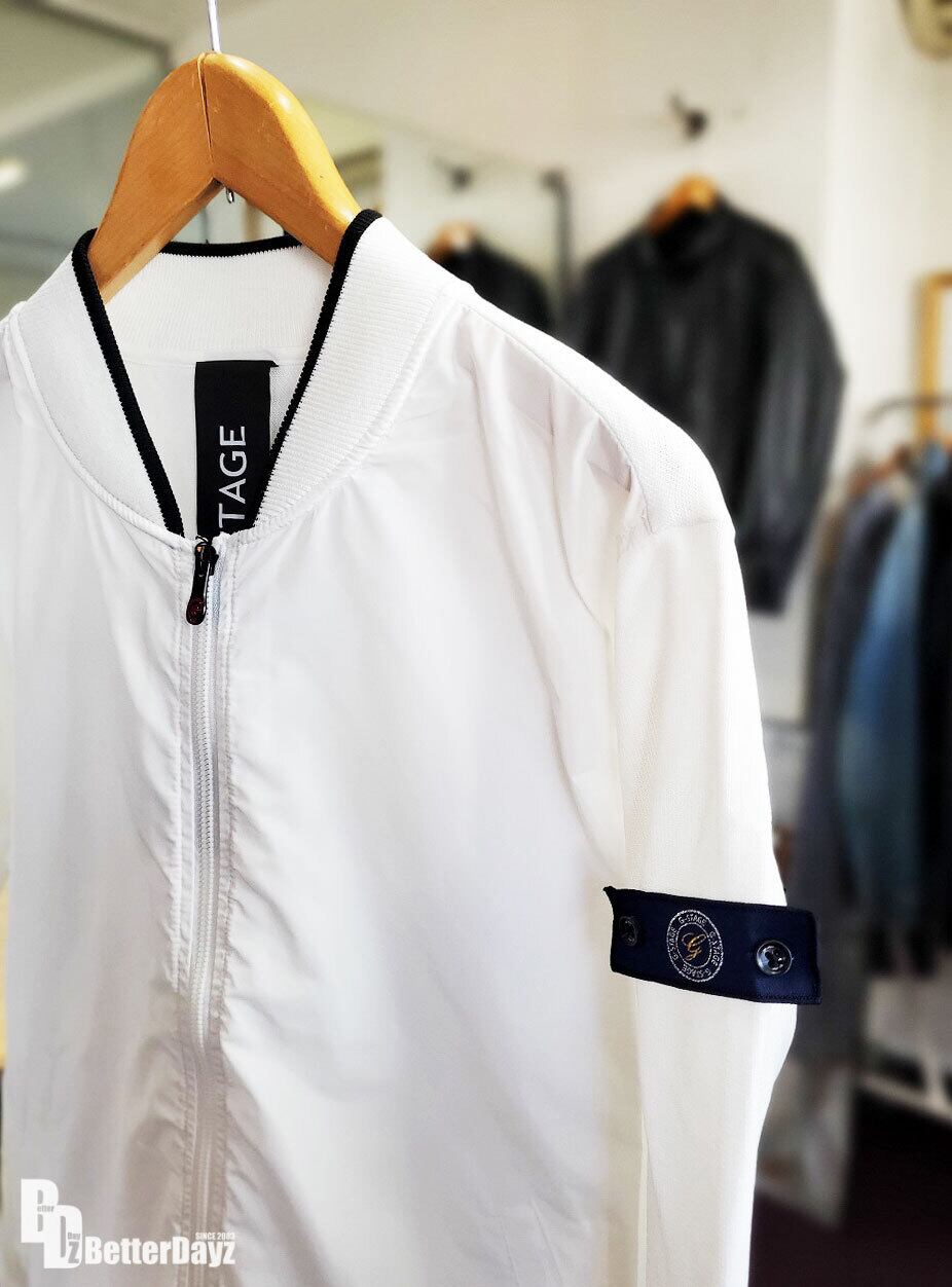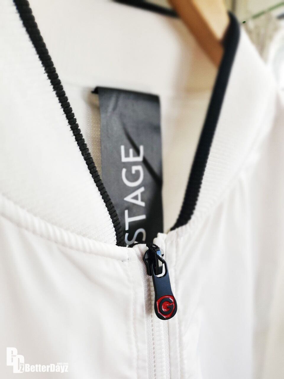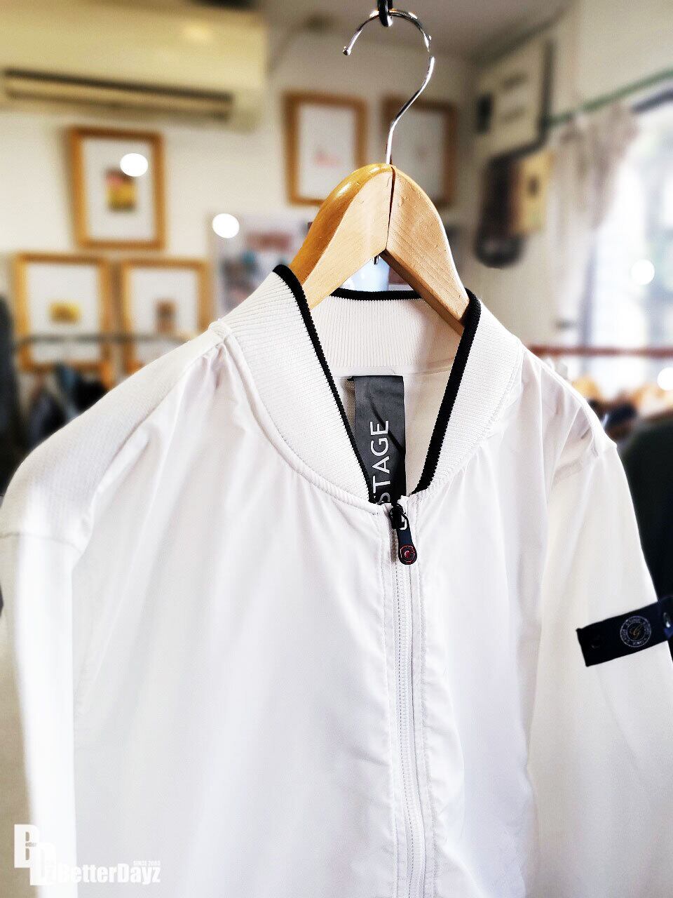 ネック部分や袖口と裾のリブには配色ラインを施し、