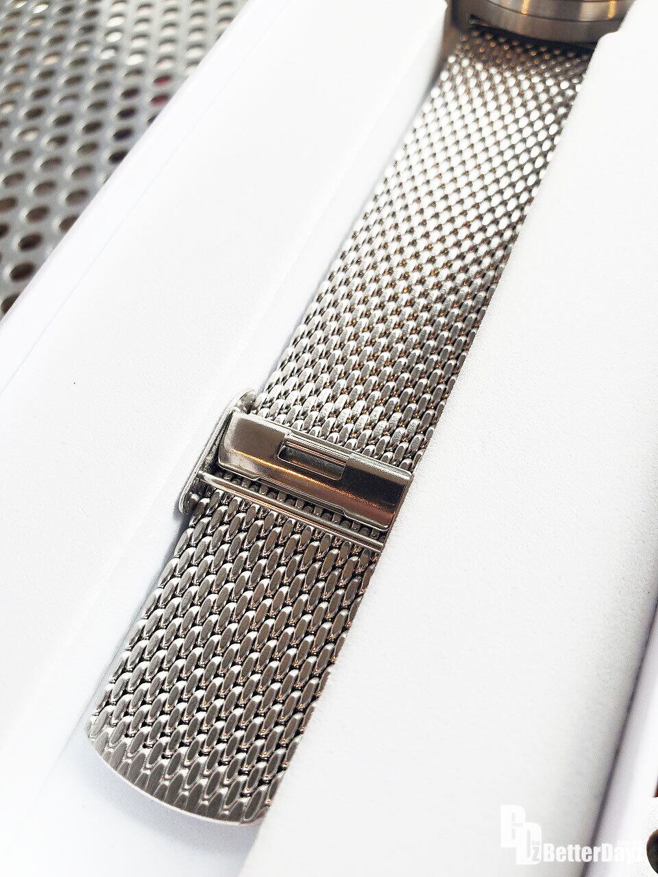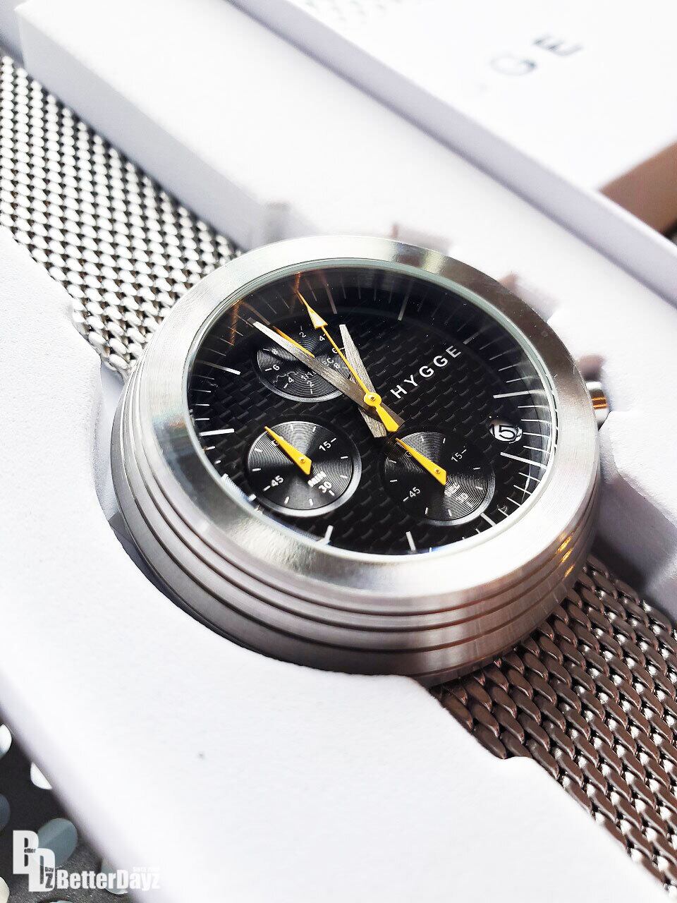 クロノウォッチ段々に上がるようなカットが特徴的のケースは、