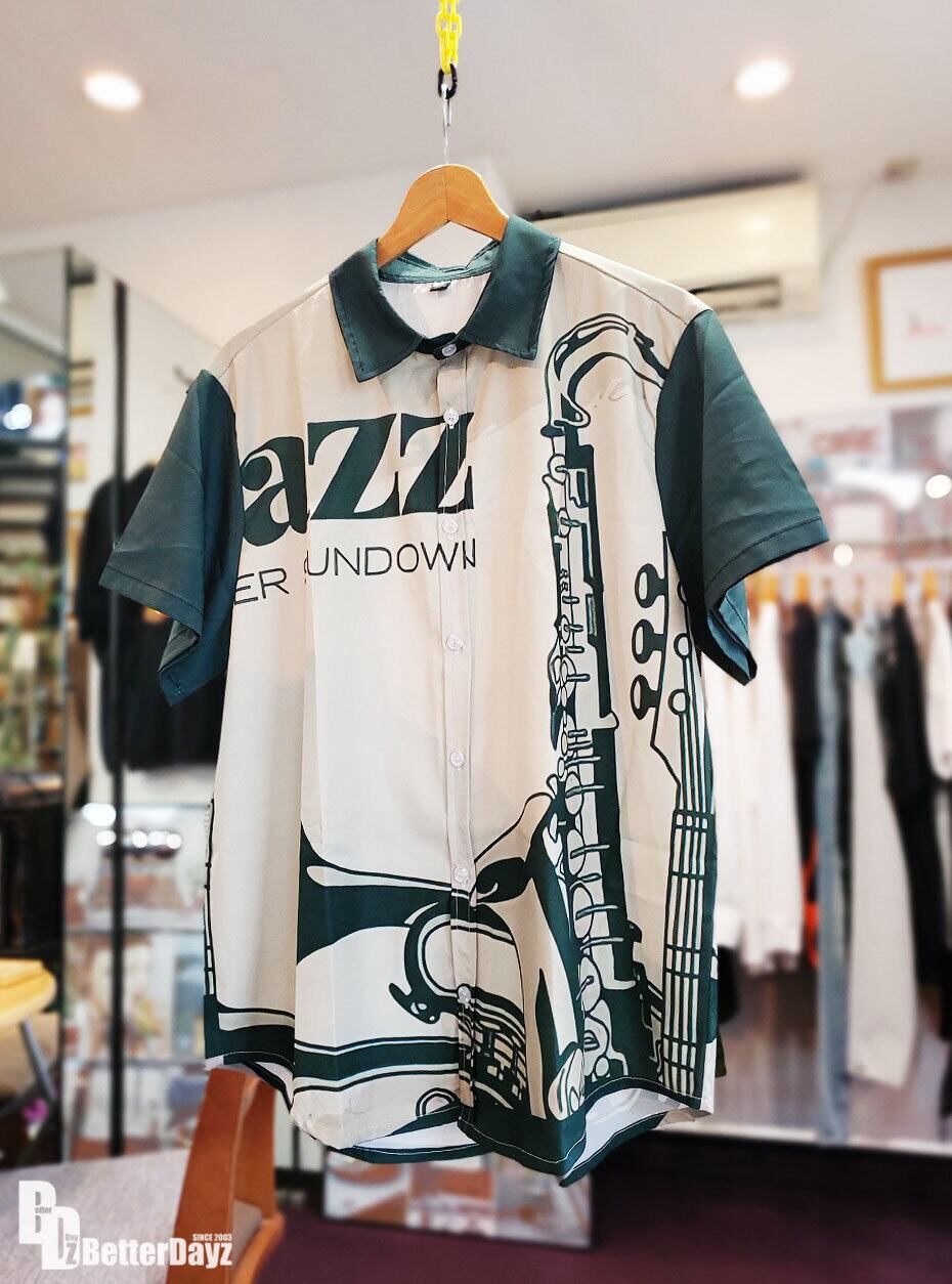 <店頭のみの販売> BetterDayz : 総柄JAZZイメージシャツ