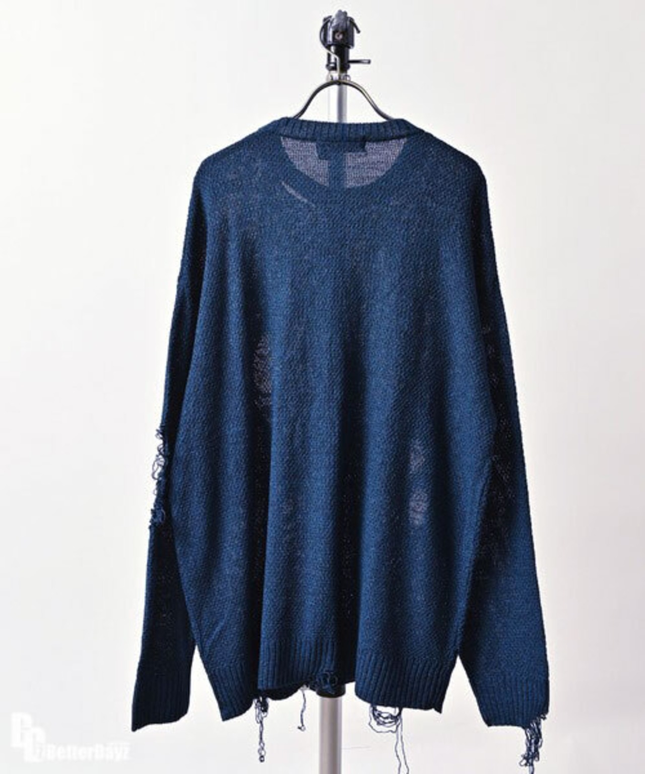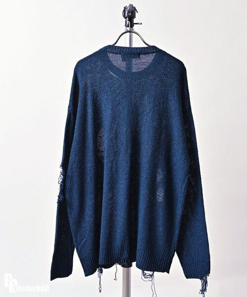 Many men many minds : ポリエステルメランジダメージニットクルーネック