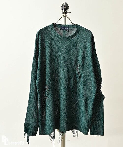 Many men many minds : ポリエステルメランジダメージニットクルーネック
