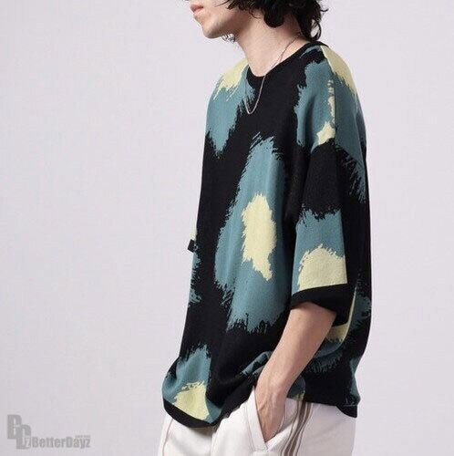 <再入荷!>Many men many minds : 14ゲージダブルジャガードバティック柄クルーネック