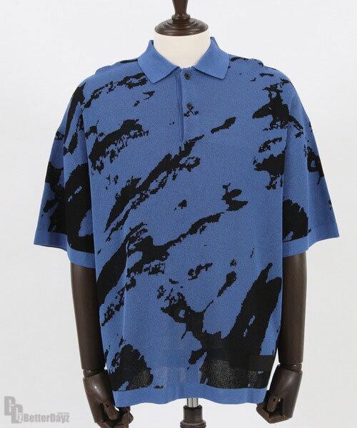 ADAM PATEK : ルーズシルエット総柄ニットポロシャツ