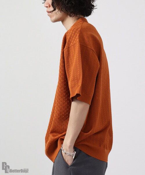<再入荷!>Many men many minds : ルーズシルエット透かし編みニットポロシャツ