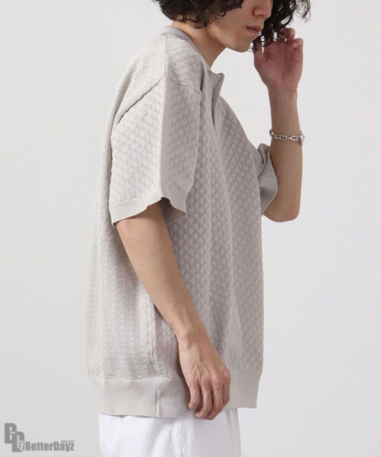 <再入荷!>Many men many minds : ルーズシルエット透かし編みニットポロシャツ