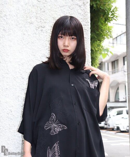 <再入荷!>ADAM PATEK : ビッグシルエットバタフライ刺繍半袖シャツ