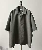 ATELANE : ポリエステルトロピカル半袖脇スリットビックオープンカラーシャツ