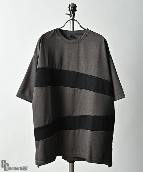 Many men many minds. : ルーズシルエットポンチスラッシュ切替半袖Tシャツ