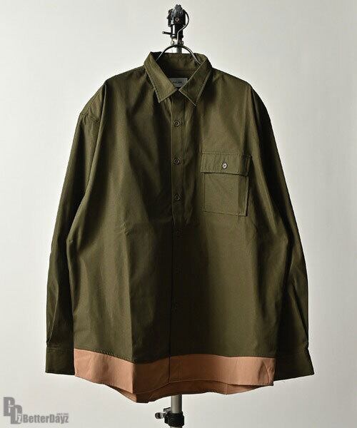 ATELANE : ポリエステルツイルバンダナ貼り付け長袖シャツ
