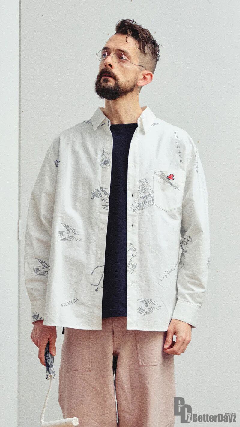 シンプルかつ遊び心のある総柄シャツができました。