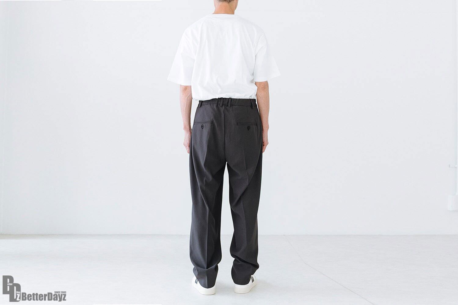 腰回りに2本タックを入れることで程よくゆとりをもたせ、