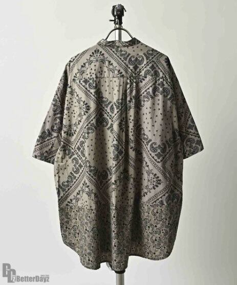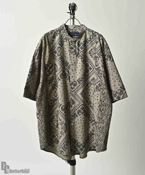 薄手のコットン100%の素材にバンダナの総柄プリントを施し、