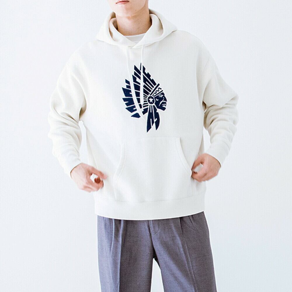 "INDIAN HEAD"は大胆にフロッキーでプリントした1着。